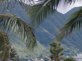 HISTORY July 2008. Viewed from Waikiki, the Majestic mountains in Manoa near the University of Hawaii show their history with deep folds covered with all kinds of natural beauty from Mother Nature. Interesting is Diamond Head Mountain which is closer to Waikiki, but little vegetation grows on it, and it is very powdery and scary to climb up. _______________________