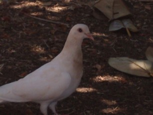 DOVE ENJOYS CONCERT AT THE UKULELE FESTIVAL July 2008. A dove stopped to listen to the concert at the Ukulele Festival while searching for food shared by the unintentional bird feeders at the crowd who accidentally dropped food from their sandwiches.