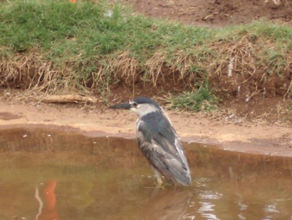 BIRD March 13, 2009. This incredible bird with a dangling white feather pony tail on the back of his head, incredibly goes fishing in the Ala Wai using human strategy to catch his prey. more