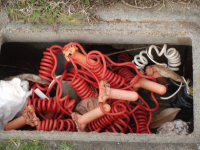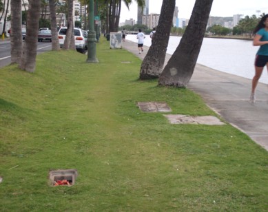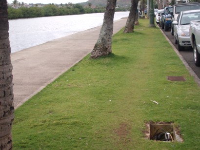 DANGEROUS March 6, 2009. There are many missing metal plates with open and exposed electrical wires on the grassy area along the Ala Wai which are a danger for runners and those walking their dogs. MORE