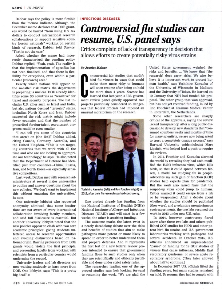 decisions related to research like Kawaoka’s. “Reviewers are all
