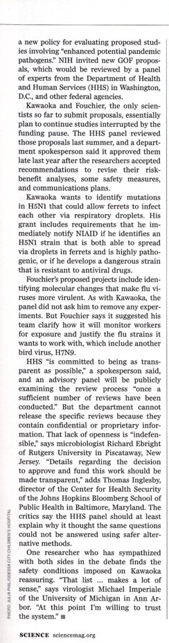 federal approval of Kawaoka’s research was “less transparent
