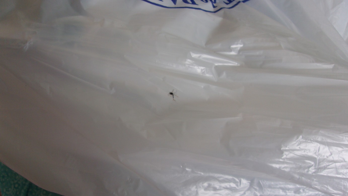 mosquito remaining on a plastic bag.
