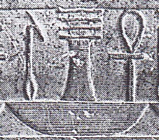 This is an Egyptian hieroglyph showing The Stoic Pillar AIA Maraia Robot in the center.
