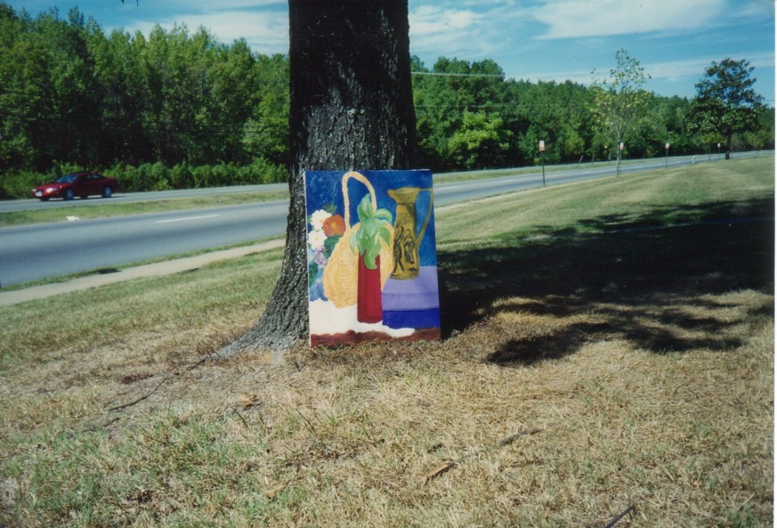 One of Mom's Paintings Beside a Tree.